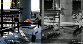 历经近一个月的测试,所有设备在常温以及 -15摄氏度的低温环境下均能正常运行。在测试过程中,对随机指定的模拟泄漏点进行测试,系统能够在测试气体模拟泄漏后的1秒内识别出泄漏气团,并且可在监控平台端实时查看泄漏点的位置、泄漏气团的形态、规模以及扩散形态;系统能够对气体泄漏报警事件进行有效记录,未受低温结冰环境的影响;测试期间,所有相关GDS气体探测器均未发出报警。
