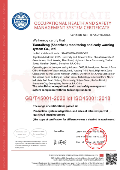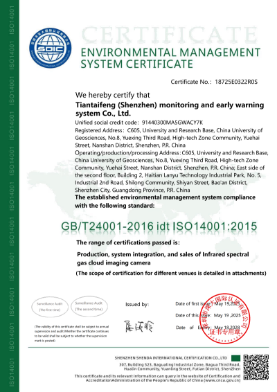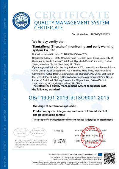 Group Standard T/CI 480-2024 "Performance Test Method Specification for Industrial Gas Leakage Gas Cloud Infrared Imaging Detection System" Certificate